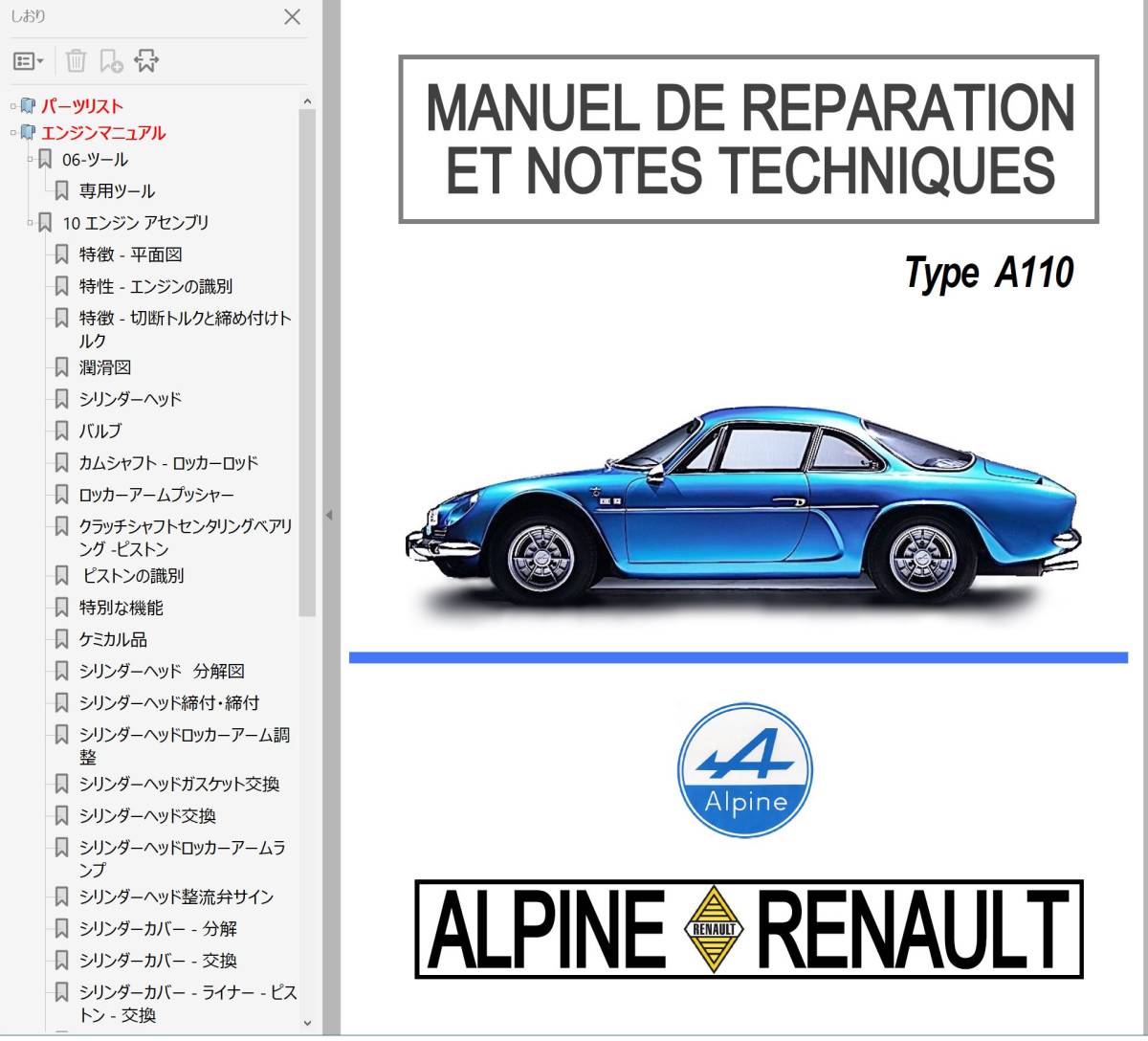 > ★★ アルピーヌ ALPINE A110 パーツリスト 整備マニュアルセット ( ワークショップマニュアル ) アルピーヌルノー