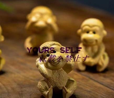 - 木彫り 猿 置物 四猿 さる オブジェ 見ざる 言わざる 聞かざる 木製彫刻 金運アップ 開運 風水グッズ インテリア