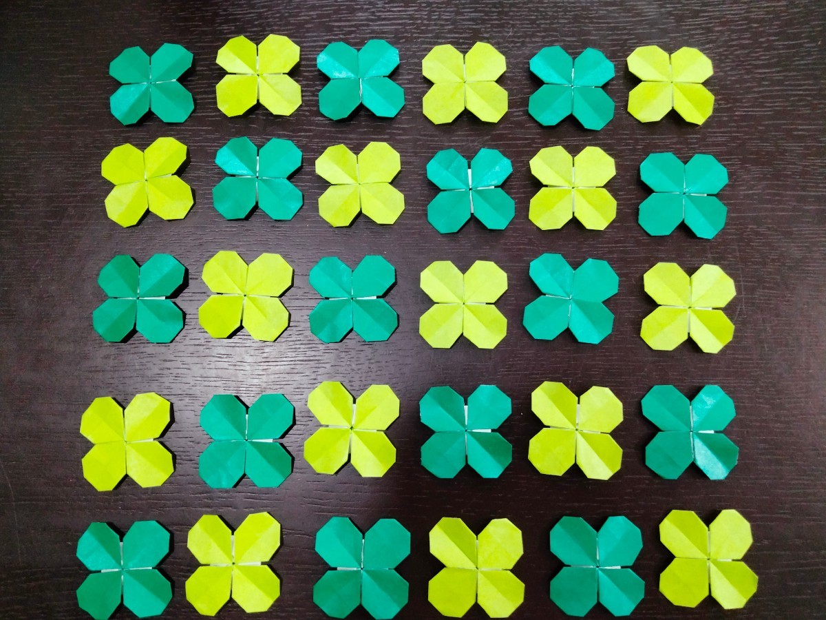 - 手作りハンドメイドの折り紙で作った*四つ葉のクローバー*緑&うす緑30個セット #壁面飾り リース 素材