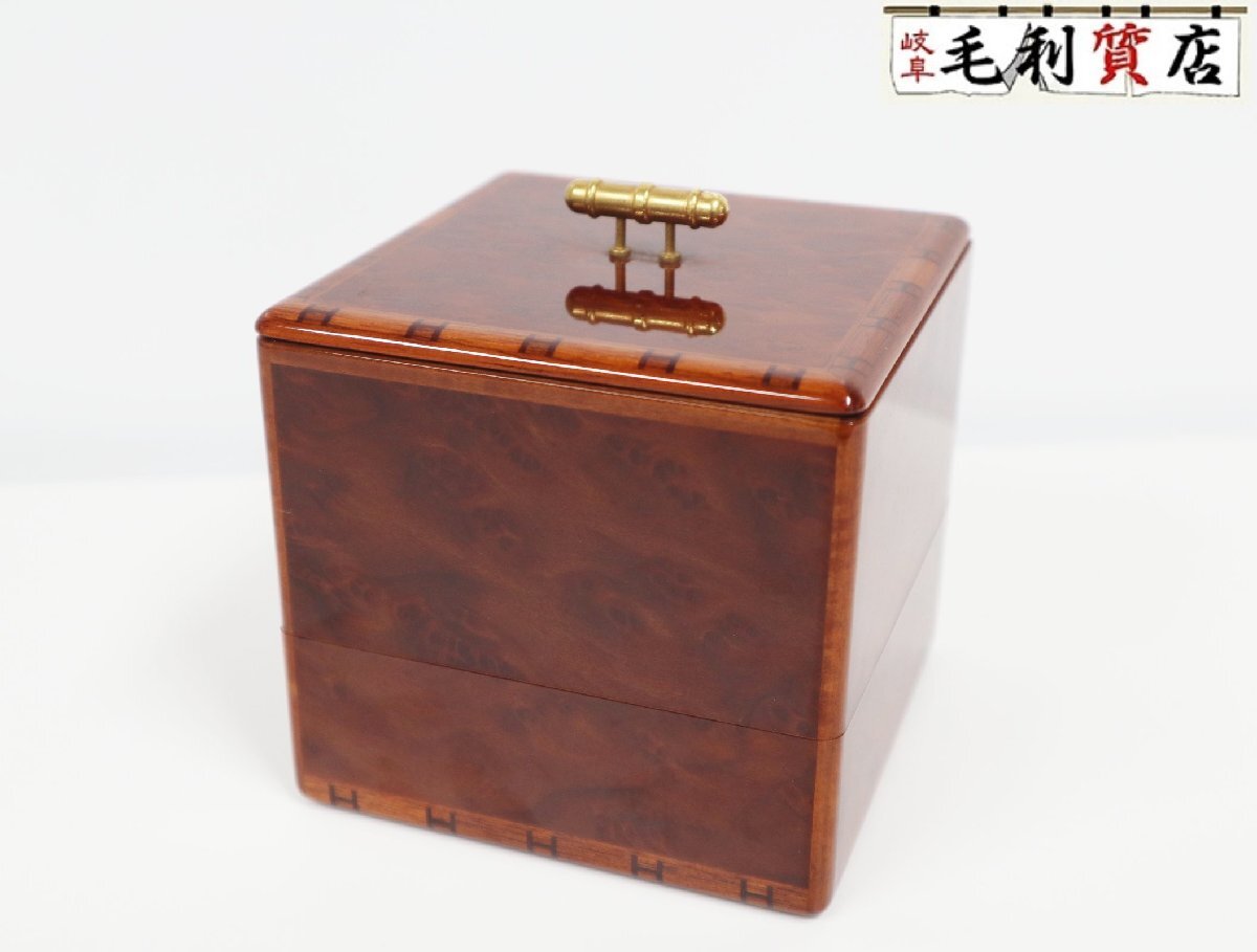 > エルメス HERMES Hロゴ ジュエリーボックス ケース 小物入れ ウッド ブラウン ゴールド金具 美品 2段 オブジェ