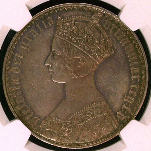 - 英国1847年 ヴィクトリア・ゴシック・クラウン銀貨 NGC PF62