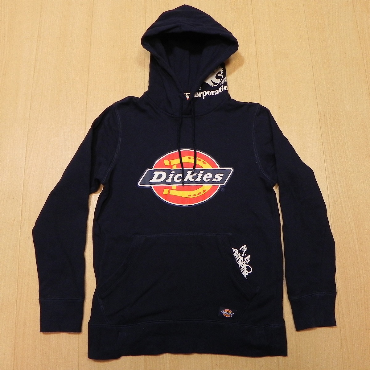 > プリント入り スウェットパーカー S 長袖 パーカー フーディ ブラック ディッキーズ dickies 紺 ネイビー 古着 ★h