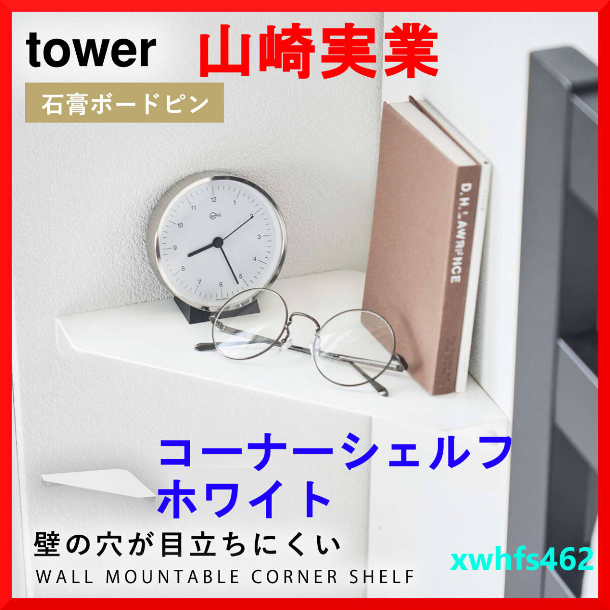 - 新品即決 山崎実業 tower 石こうボード壁対応 コーナーシェルフ ホワイト 賃貸 簡単取付 充電コード通せる隙間 小物置き ディスプレイ zak