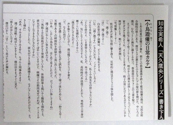 - 【リーフレット】 限定特典 知念実希人 「天久鷹央シリーズ」 書き下ろし掌編 【小鳥遊優の日常カルテ】 ペーパー 天久鷹央の推理カルテ