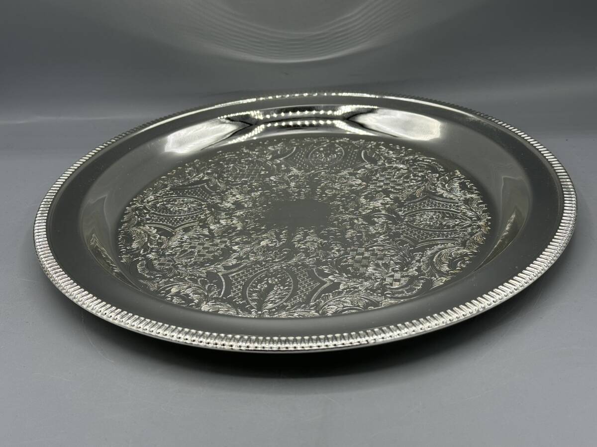 - 英国 シルバー P 円形 シルバープレート 銀P お盆 トレー トレイ 銀メッキ (BS-2) ビンテージ