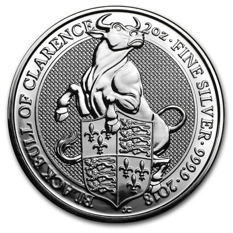 - [保証書・カプセル付き] 2018年 (新品) イギリス「クィーンズ ビースト・クラレンスの黒い雄牛」純銀 2オンス 銀貨