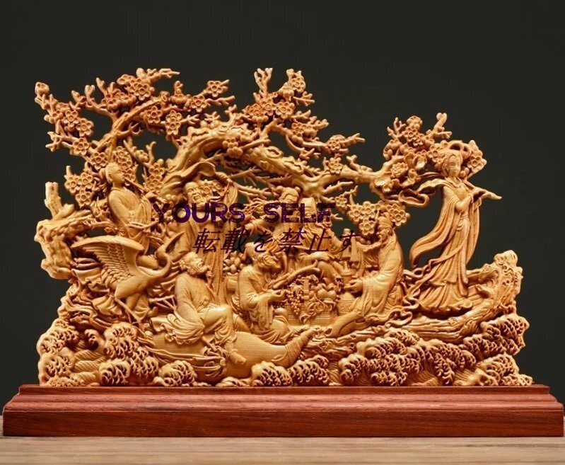 - 総檜材 彫刻八仙が海を渡る神像の置物