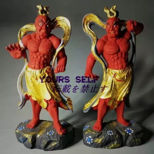 - 彩繪 金剛力士像一式 木彫仏像 仏教美術 精密細工 仏師手仕上げ品 高さ13cm