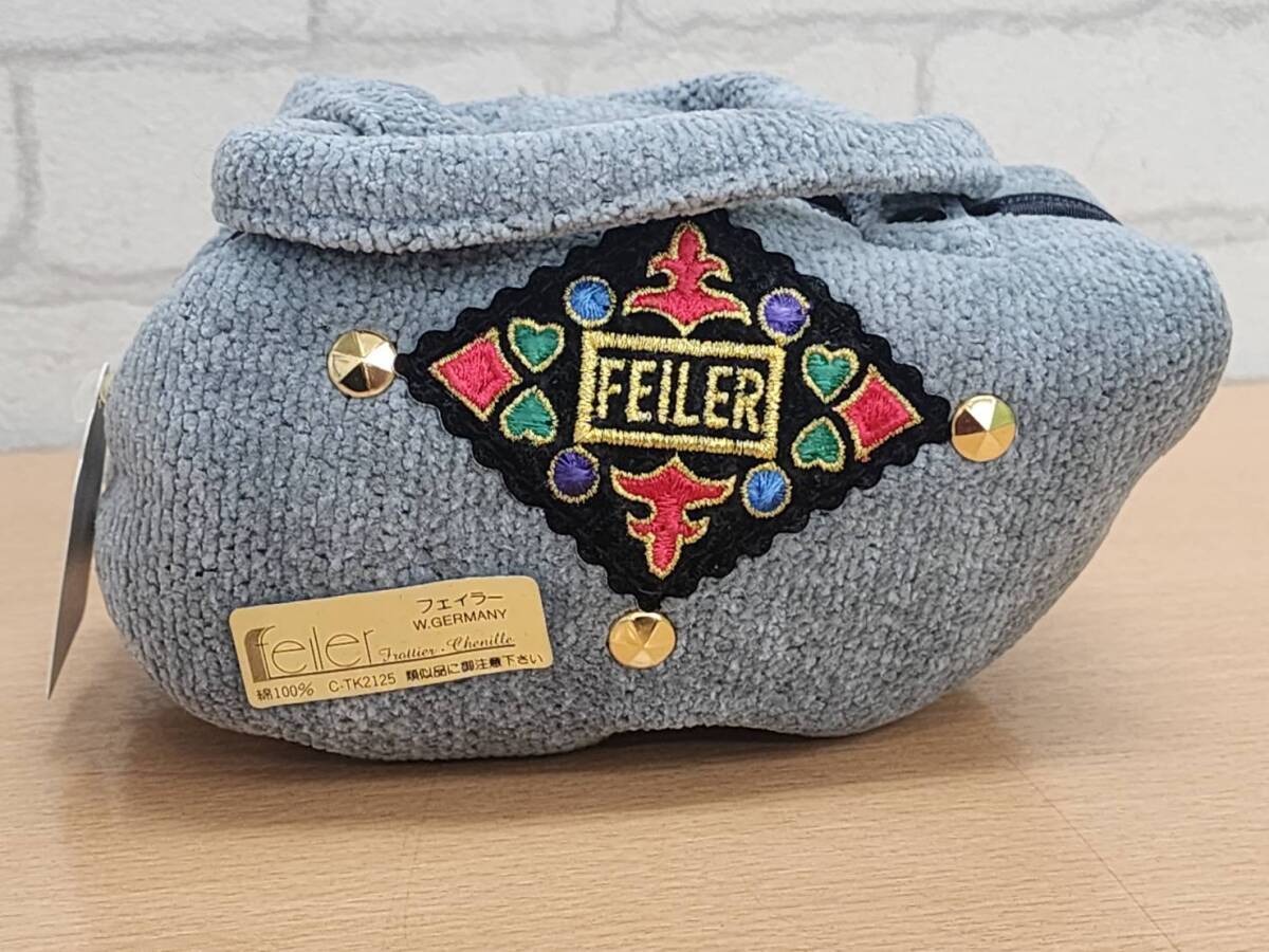 - 5810★ R61114 未使用 FEILER フェイラー ミニバッグ ミニポーチ アクセサリーポーチ ミニハンドバッグ グレー ★
