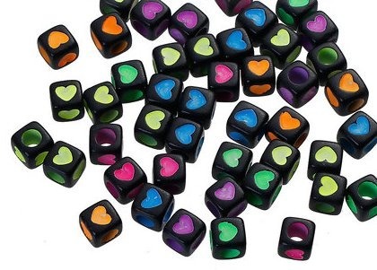 > TT-アクリルビーズ30個パック ハート模様プラスチックビーズ(ミックスカラー)アクセサリー手芸用ビーズ7mm×7mm
