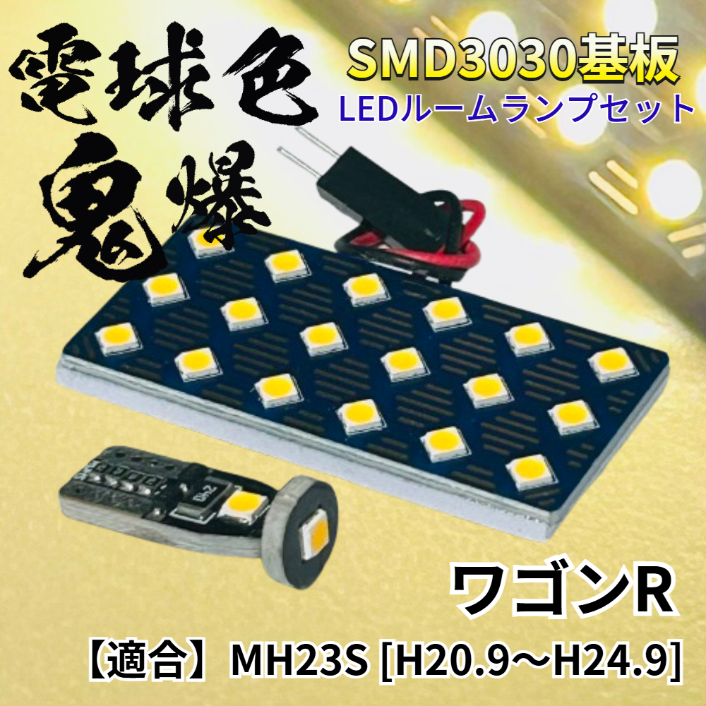 - 【電球色】ワゴンR MH23S [H20.9~H24.9] 暖色 鬼爆基板 3030SMD LED ルームランプ セット 車内灯 室内灯 パーツ アクセサリ スズキ