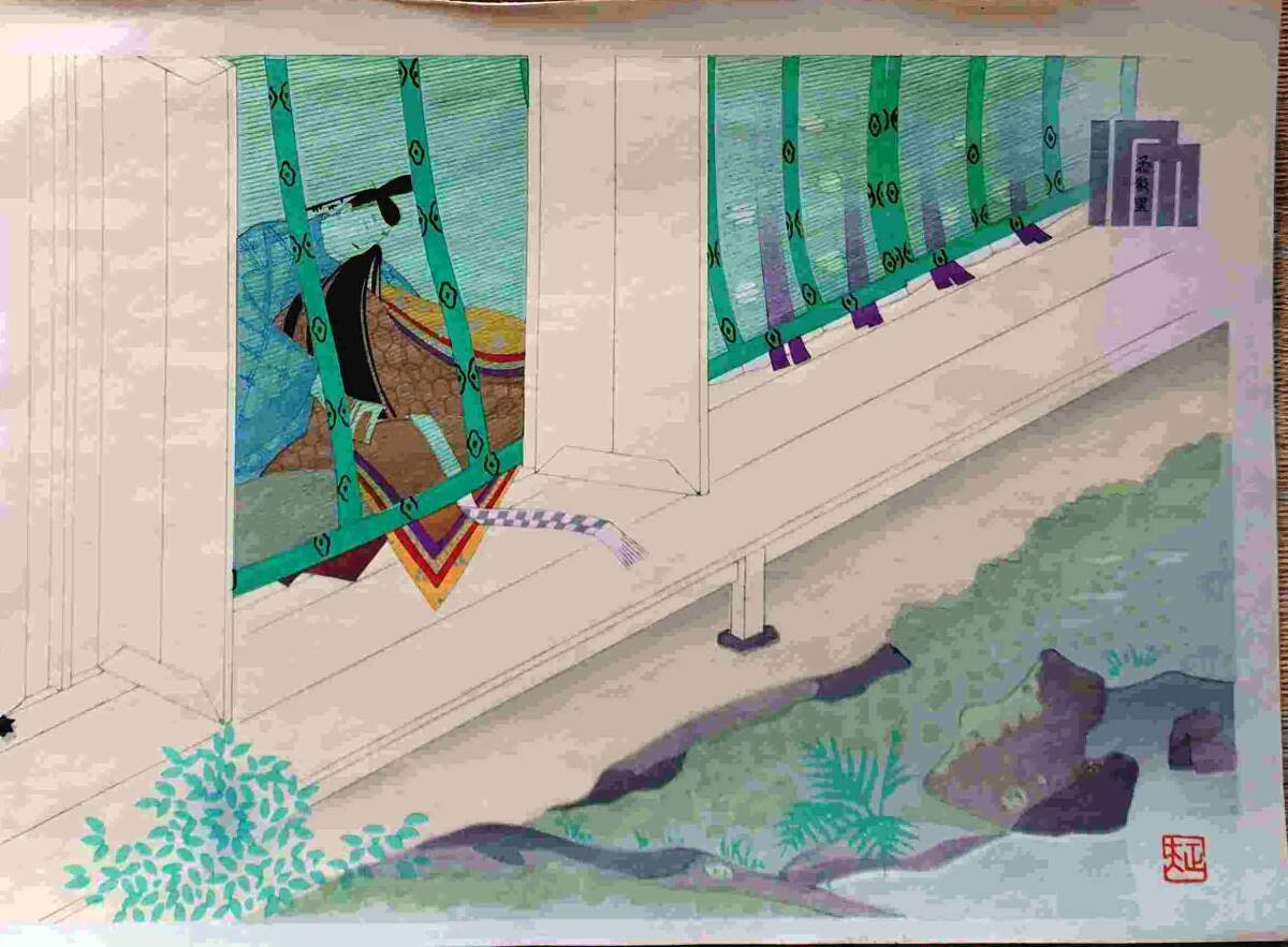 - f24121411〇彩色木版画1枚 源氏物語五十四帖 花散里 山田書院 昭和時代〇和本古書古文書