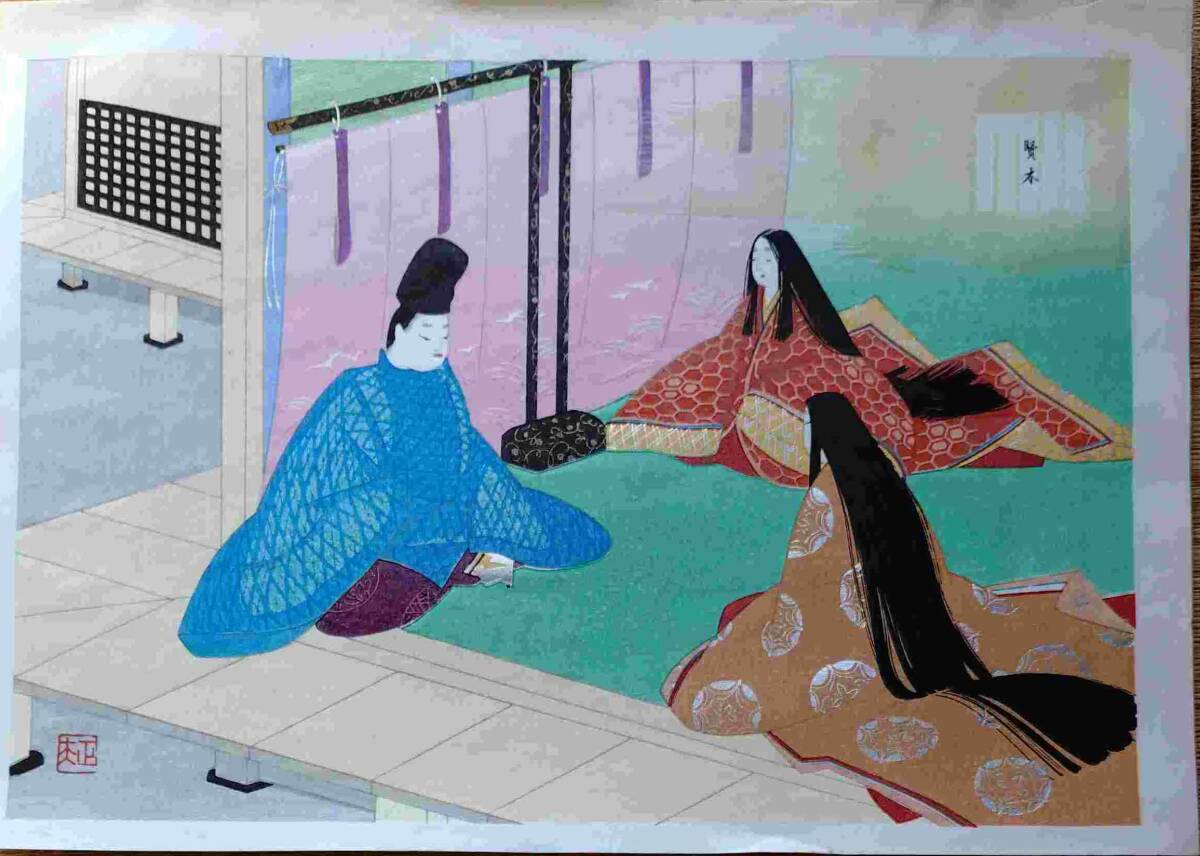 - f24121410〇彩色木版画1枚 源氏物語五十四帖 賢木 山田書院 昭和時代〇和本古書古文書