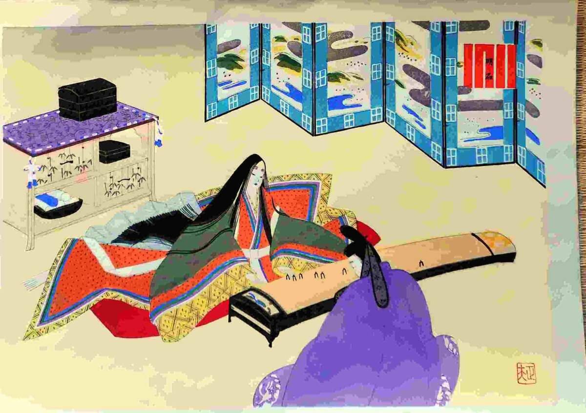 - f24121413〇彩色木版画1枚 源氏物語五十四帖 明石 山田書院 昭和時代〇和本古書古文書