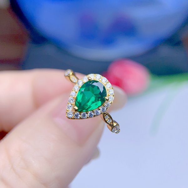 女性のための天然エメラルドリング,8x6mm,シルバー925,高級バースデーギフト