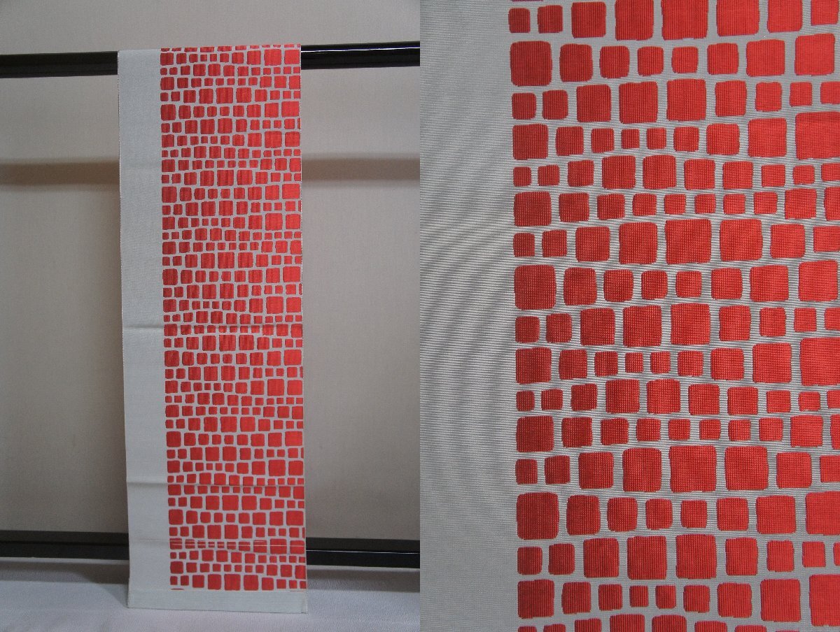 - 正絹本筑博多紋織アイボリー色地石畳模様名古屋帯[N15825]