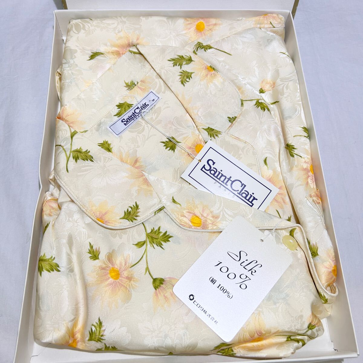 - ★未使用品★Mサイズ★ Saint Clair Paris シルク100% 絹 パジャマ 長袖 サンクレール シャツ 花柄 上下セット レディース 部屋着 (01197C