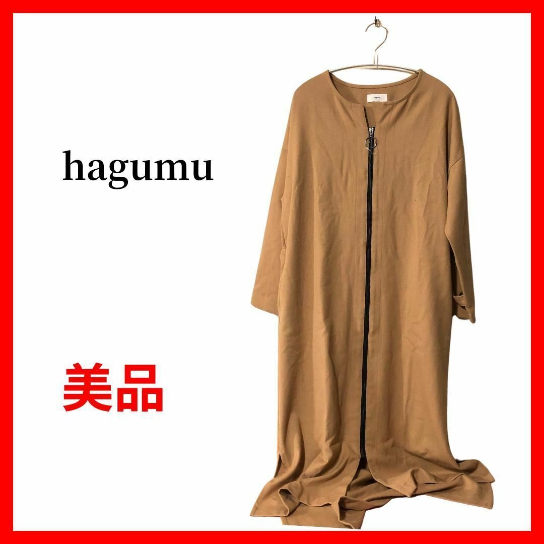 - hagumu ハグム ロングコート 襟なし ジップアップ B764