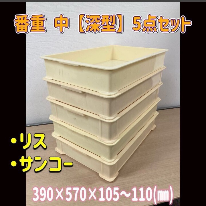 - 石②) 番重 (中) 5個セット 小型 深型 フードコンテナ 厨房 業務用 サンコー リス 製菓 パン プラスチックコンテナ (250120)