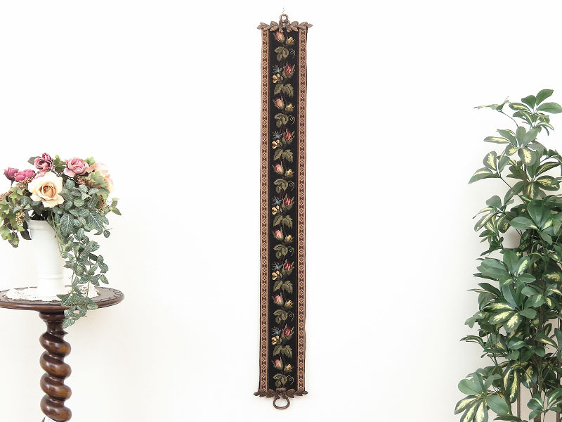 > 可愛らしい花のニードル刺繍が施されたベルプル/タペストリー/壁掛け/店舗什器/ディスプレイ/インテリア/ハンドクラフト/手工芸/AL-0692/