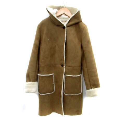 - メルローズ MELROSE CLAIRE フェイクムートンコート ロング丈 フード付き 茶色 ブラウン /HO2 レディース
