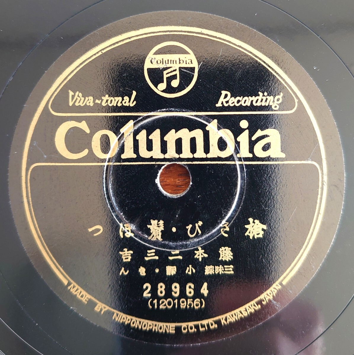 - 【SP盤レコード/凸有】Columbia 28964 端唄/槍さび・鬢ほつ/大津繪-大津絵/藤本二三吉 三味線:小靜・きん