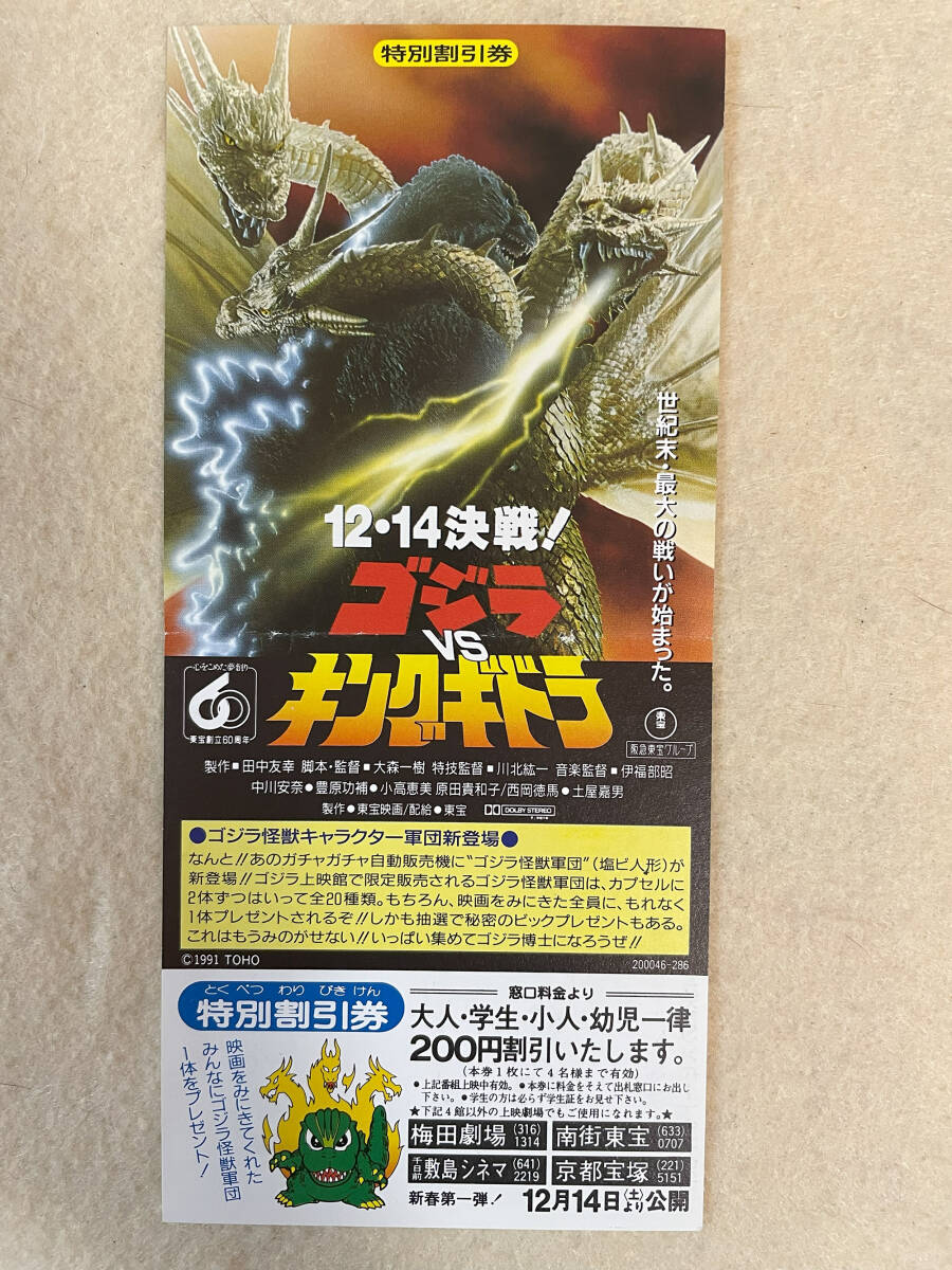 - ゴジラVSキングギドラ 特別割引券/東宝 1991年 A-4 ※期限切れ TL1557