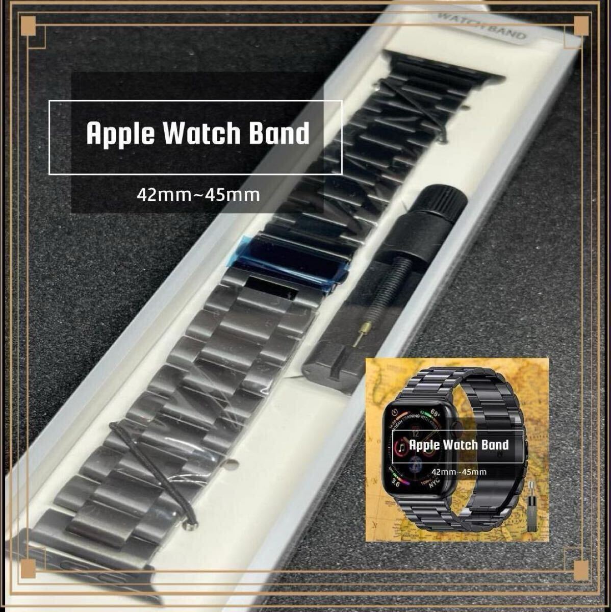 - 箱付き*高級感 アップルウォッチ*ステンレス黒ブラック42/44/45mmバンド