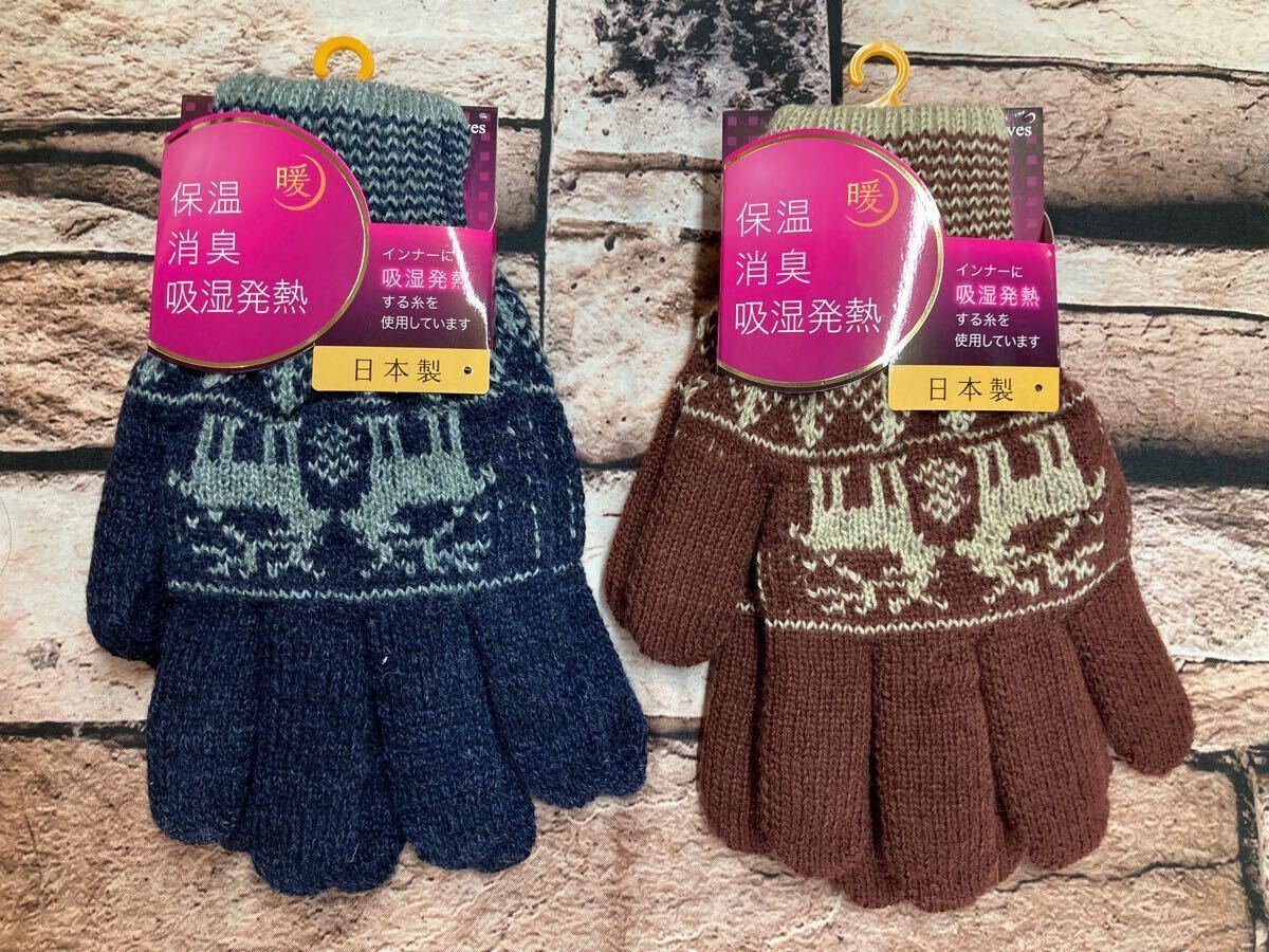 - 送料無料!日本製 保温&消臭&吸湿発熱!可愛いノルディック柄!レディース二重編み ニットグローブ(2色から)1双