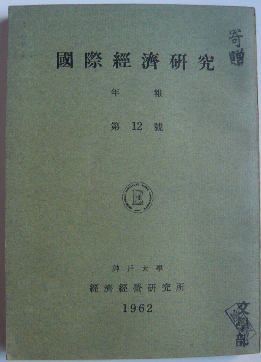 - 【入手困難本!】【古書】ー年報 第12号/1962年ー『国際経済研究』神戸大学経済経営研究所