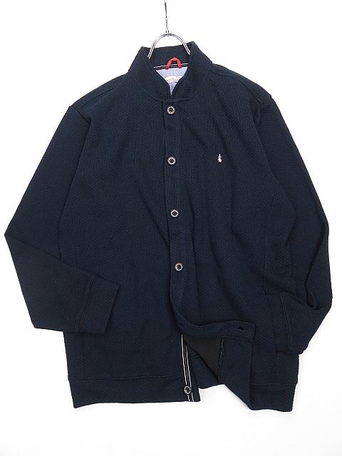 - 【送料無料】ハッシュパピー カジュアルニットジャケット ロゴ刺繍入り ボトルネック ネイビー 紺 メンズ2L