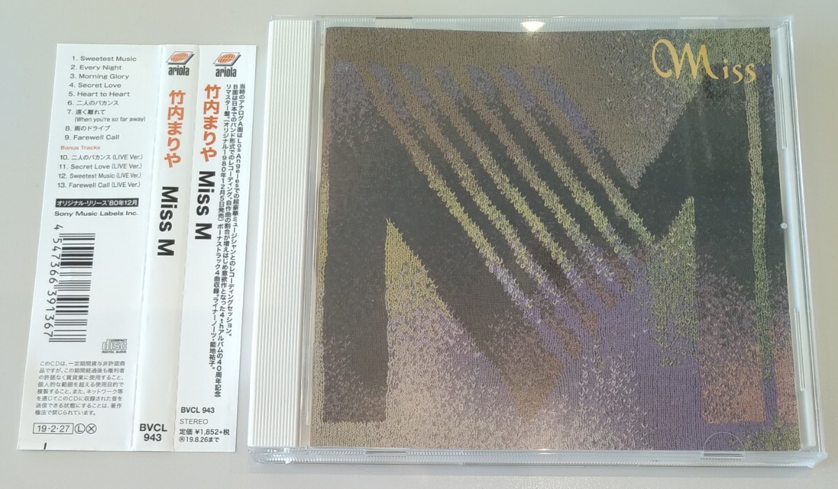 - Miss M 竹内まりや 旧規格リマスター帯付国内盤中古CD mariya takeuchi ミス エム 山下達郎 ボートラ収録 BVCL943 1852円+税盤