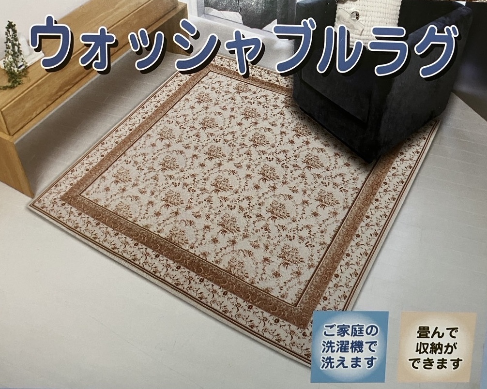 - ザフラ/ベージュ 190X240cm 約3帖用 ウオッシャブルラグ ラグマット 送料無料