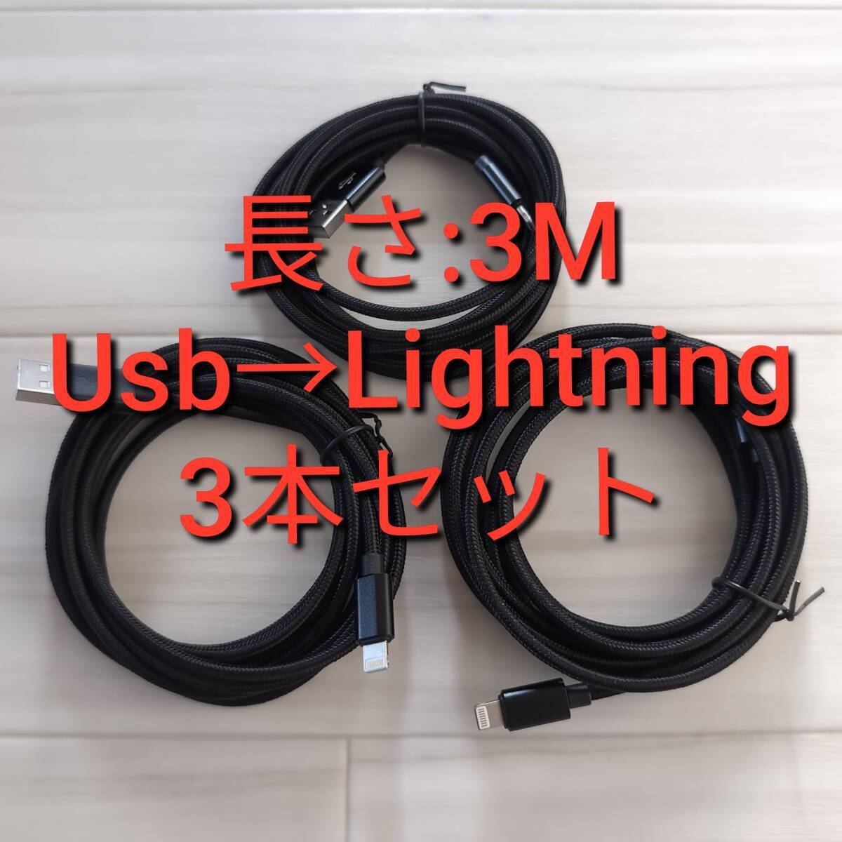 > 3本セット 3m iPhone 純正品質 急速 充電 USB ケーブル ナイロン編み 断線防止 データ転送 高耐久性 ライトニング アイフォン 3メートル