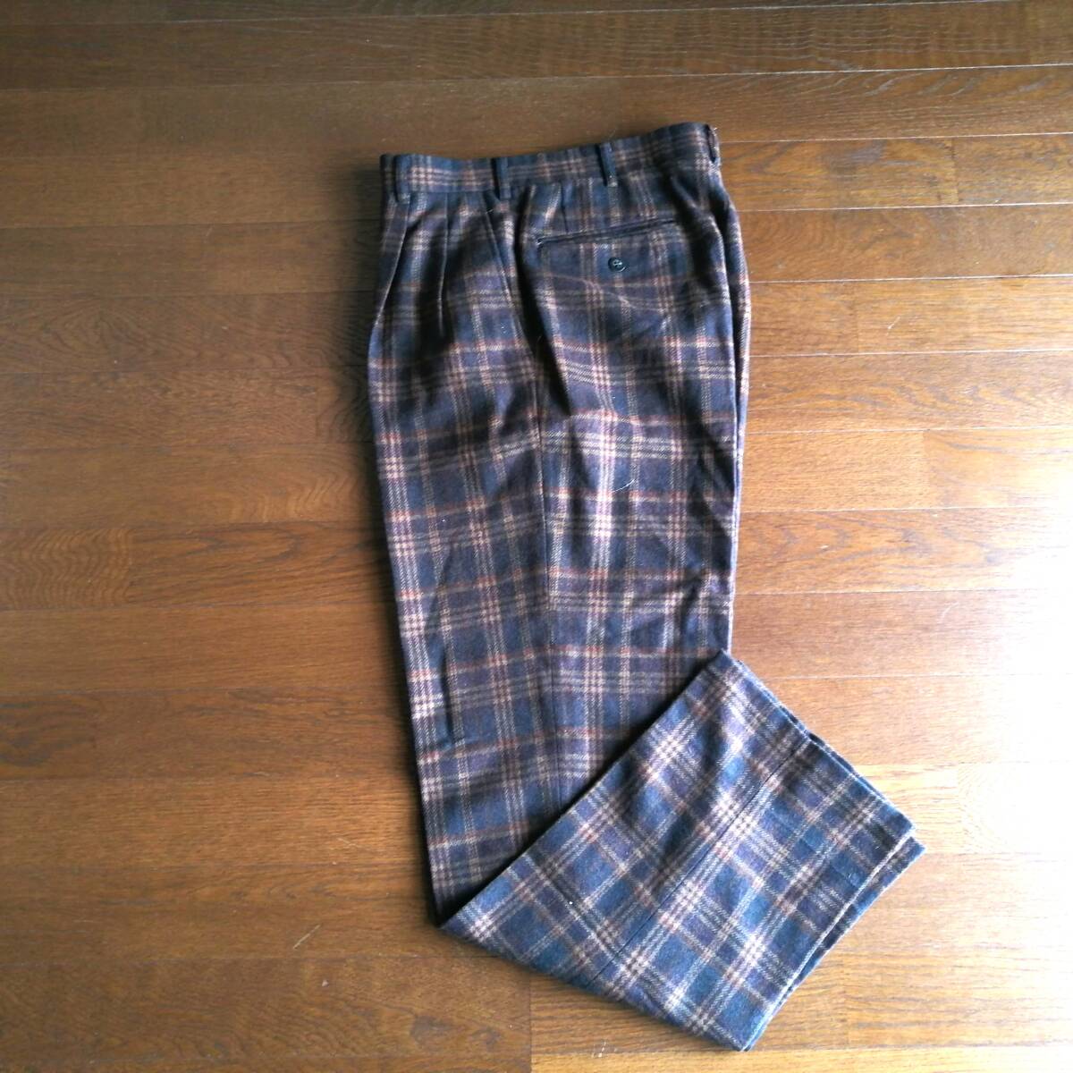 - スラックス ウールパンツ ツータック ウールブレンド ウエスト76 25-0128fu14【4点同梱で送料無料】
