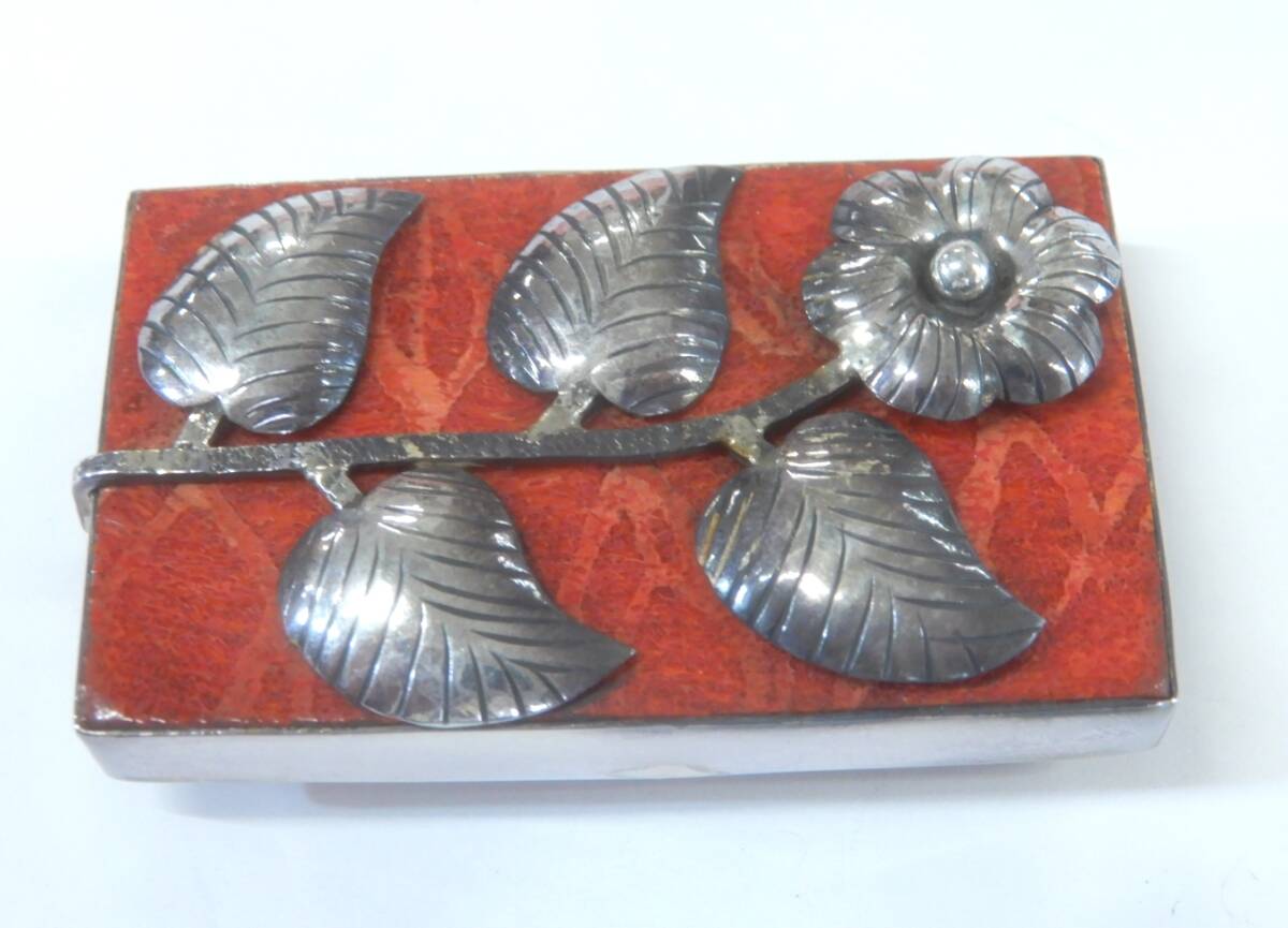 - <銀の斧>銀製・925刻印あり珊瑚に銀花・チュルク特注品