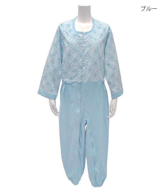 - 制菌前開き介護用つなぎ(フルオープン)LLサイズ/ブルー(丸昌)フックオープン式