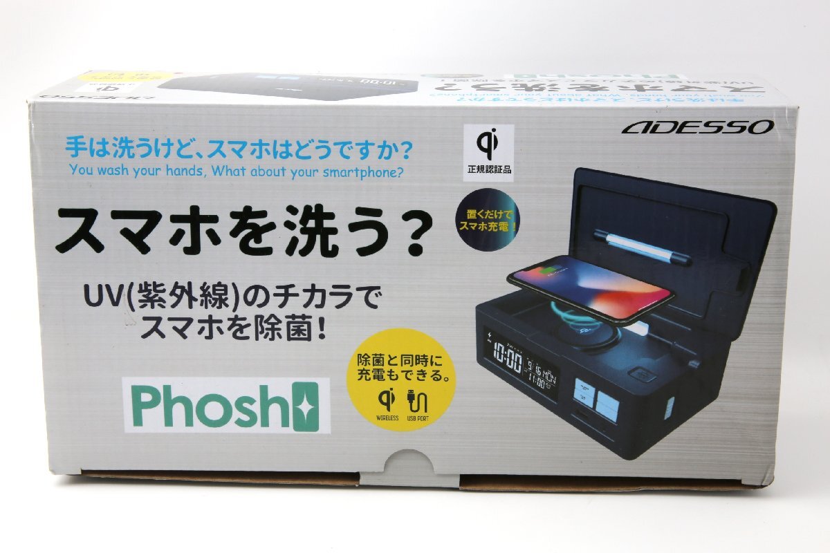 > 【美品】ADESSO Phosh PS-01 アデッソ フォッシュ 紫外線除菌&ワイヤレス充電+USB充電機能付き クロック #5758