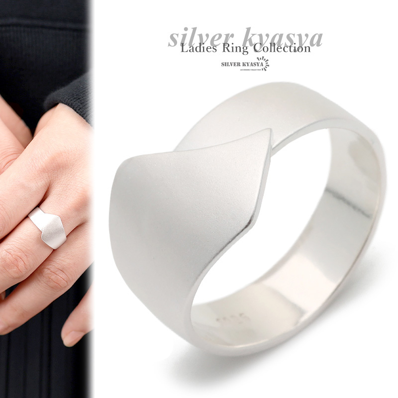 - シルバー925 リング 指輪 レディース シルバー マット 艶消し デザインリング 質感 リボン ラベル 銀色 金属アレルギー