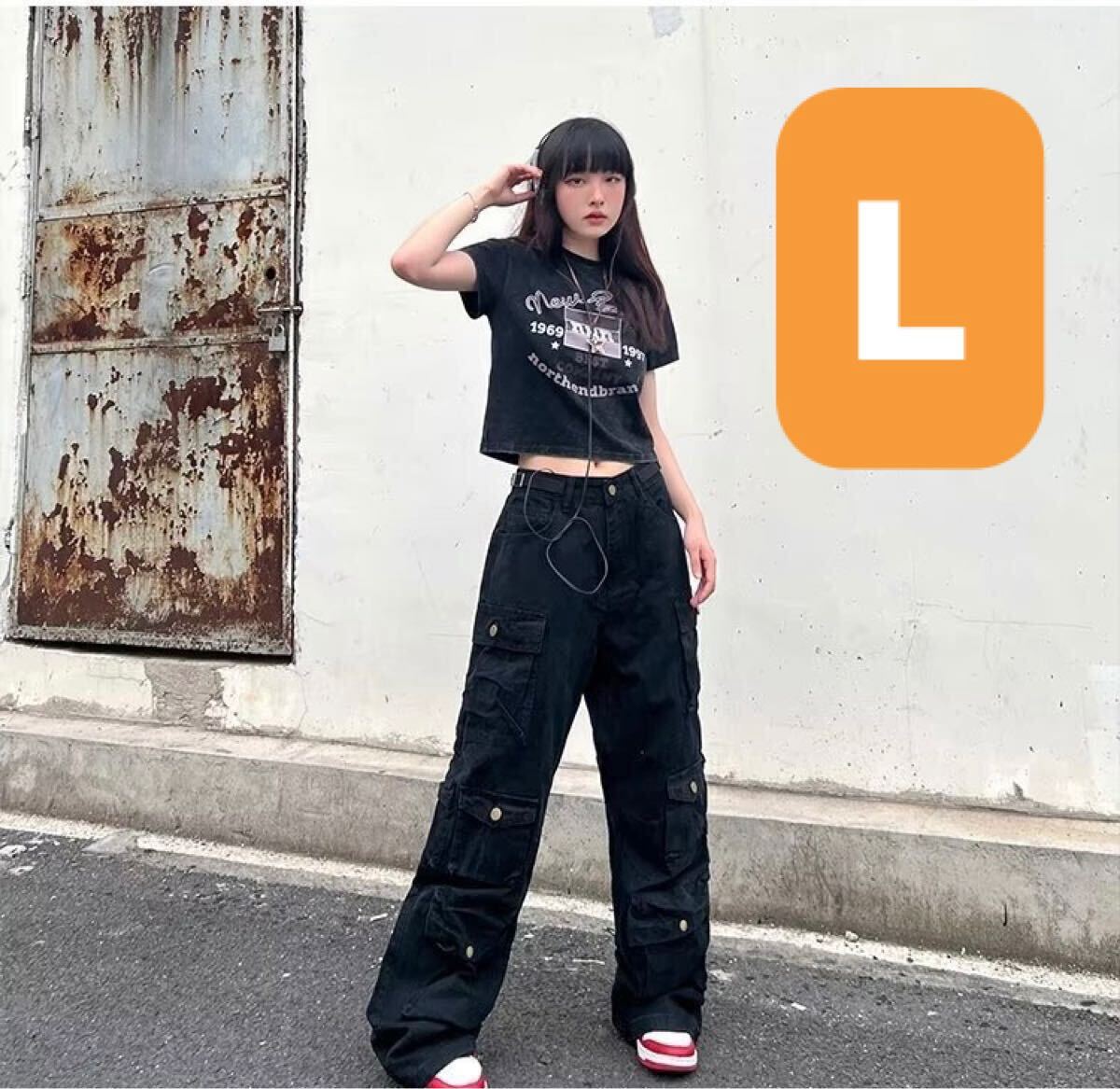 > カーゴパンツ ルーズパンツ ワイドパンツ ワークパンツ ボトムス バギーパンツ パンツ ワイドレッグ ストリート 人気 オススメ ブラック L