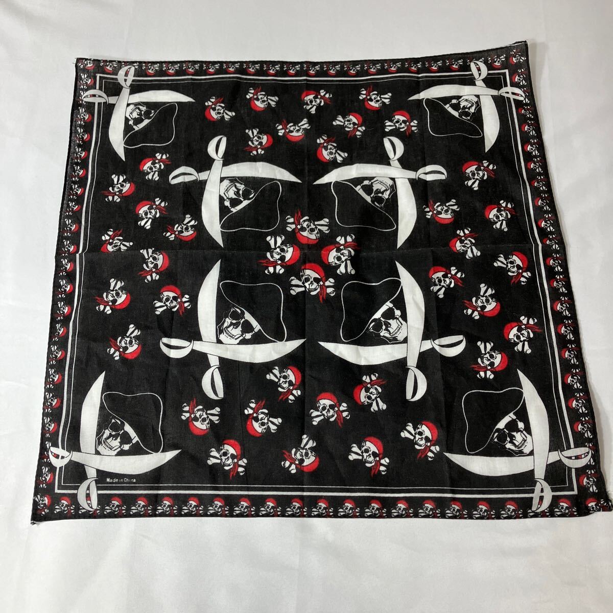 - バンダナ 総柄 ドクロ スカル 海賊 アメカジ USA古着 黒 ブラック