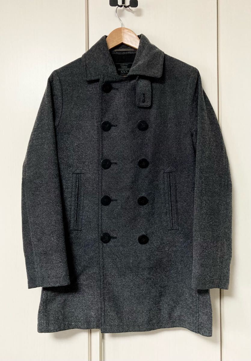 > 美品☆[THE ME HYSTERIC XXX] 定価74,800 10 BUTTON PEA COAT スコーピオンボタン ピーコート S グレー 日本製 ヒステリックグラマー