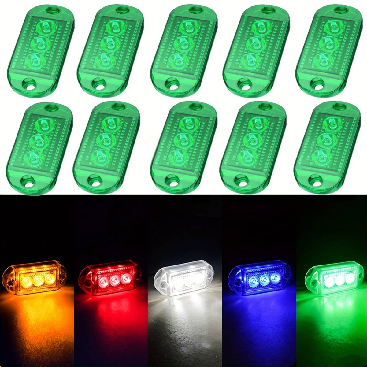 > 10個セット 車用 サイドライト LED サイドマーカー グリーン 緑 3LED 12V 24V 防水 LEDライト 明るい 6.7cm デコトラ 配線付け t4616