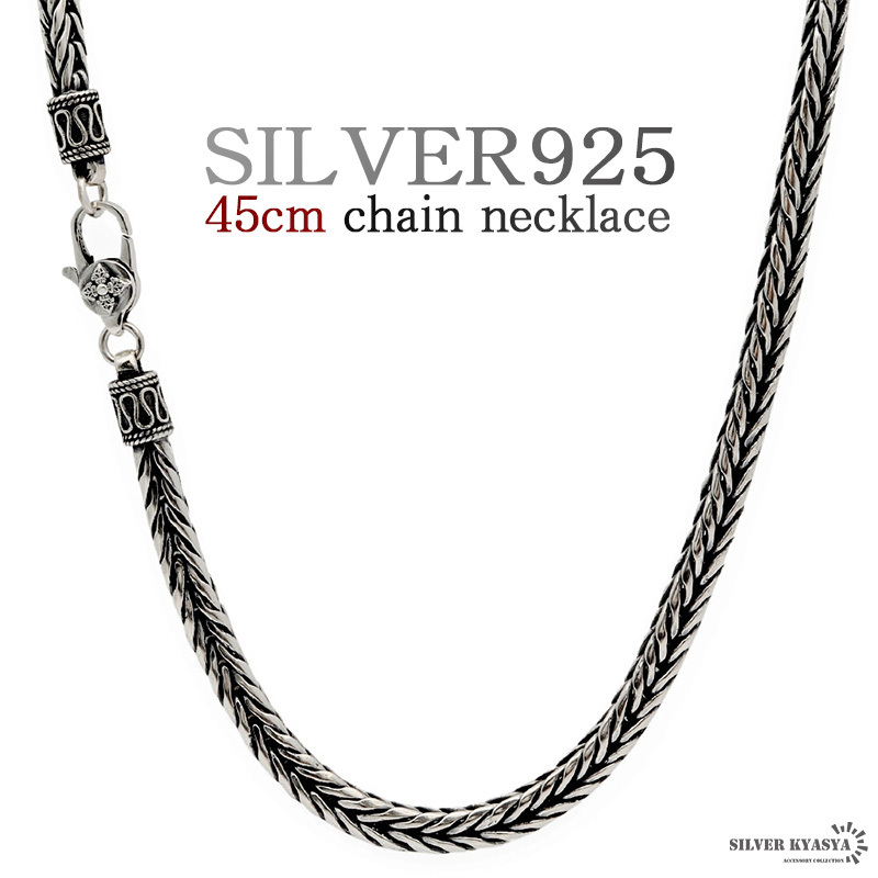 - 45cm ネックレス メンズ シルバー925 チェーンネックレス 銀 金剛杵 万字 卍 刻印 スピガチェーン 細身 金属アレルギー