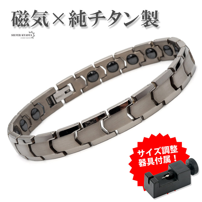 > 純チタン 磁気ブレスレット シルバー Titanium チタンブレスレット 軽い チェーンブレスレット スポーツ 磁力 磁性