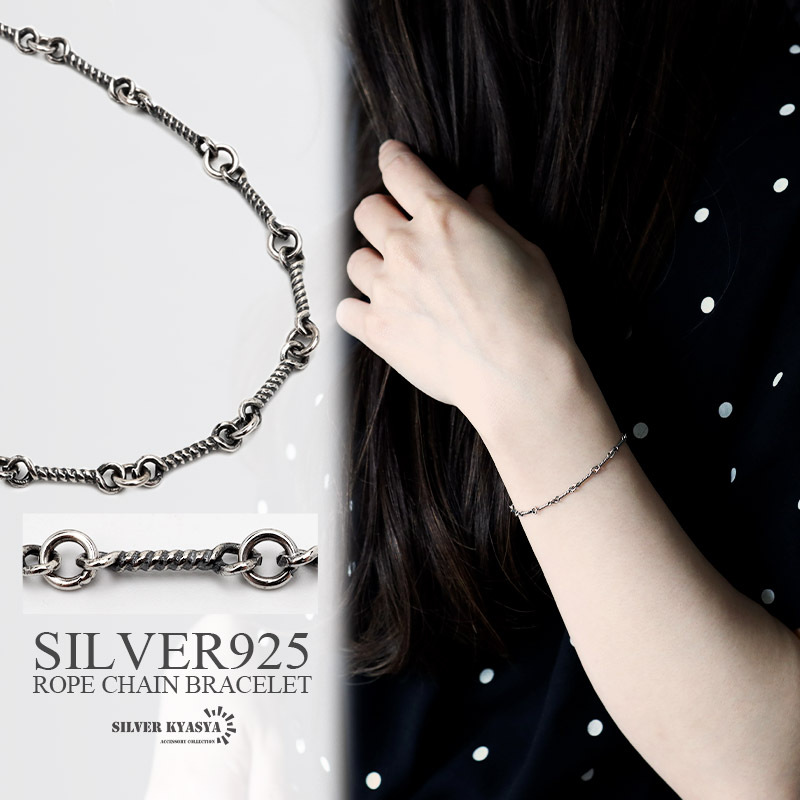 - シルバー925 ツイストチェーン ブレスレット レディース 女性 燻し ブラック ロープ チェーンブレスレット 金属アレルギー