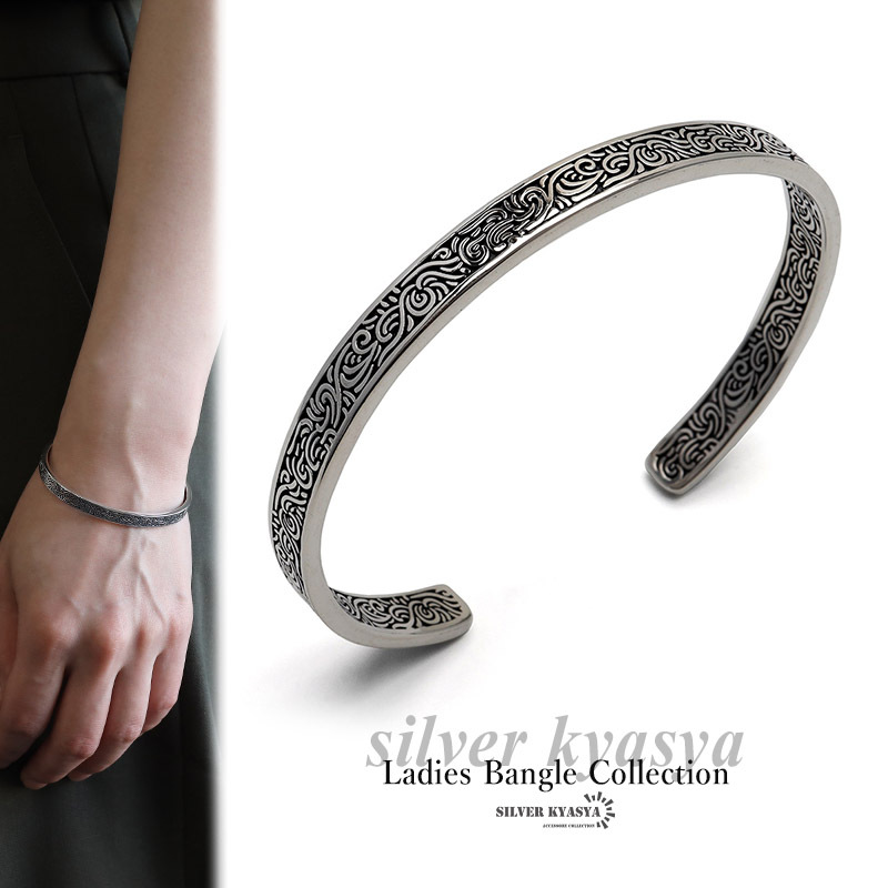 > アラベスクバングル シルバー925 唐草バングル 細め レディース ブレスレット シルバー シンプル カジュアル 人気