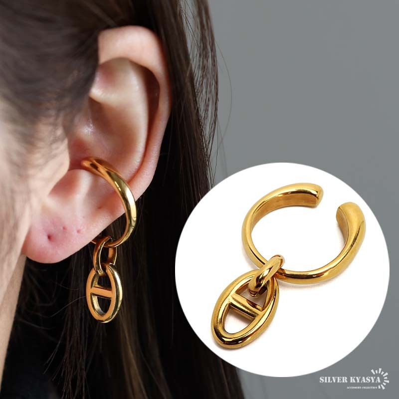 - ステンレス イヤーカフ アンカーチェーン 大ぶりイヤーカフ ノンホール 穴不要 ゴールド 18KGP 片耳1点 金アレ対応