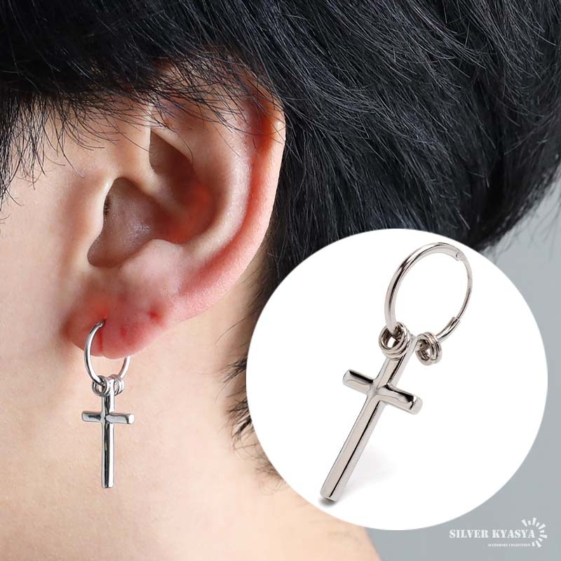 - クロスフープピアス シルバー925 リングピアス メンズ 揺れる クロスピアス 925 韓流 スター 片耳1点 金アレ対応
