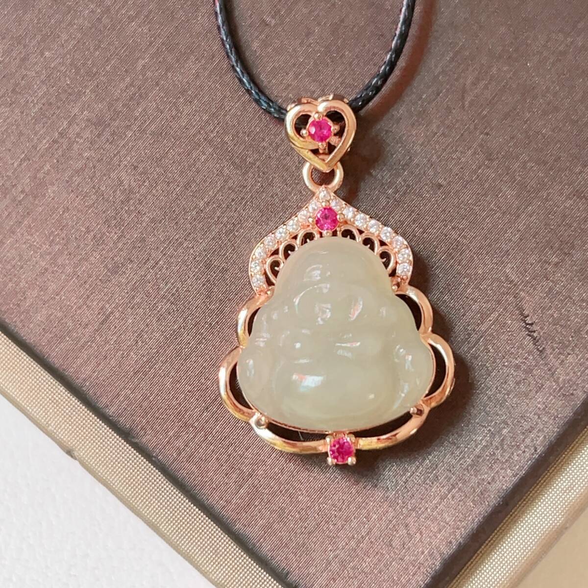 - ◇和田玉◇ヒスイ◇ネックレス◇ペンダント◇弥勒形 彫刻◇お守り◇天然石◇パワーストーン◇巾着袋付き◇プレゼントにも035P1313